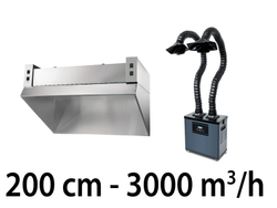 Cappa L200 cm inox 3000 mc/h con unità di filtraggio
