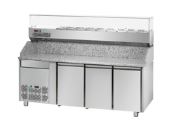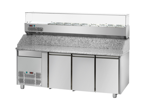Banco refrigerato per pizzeria con top in granito e vano porta ingredienti refrigerato