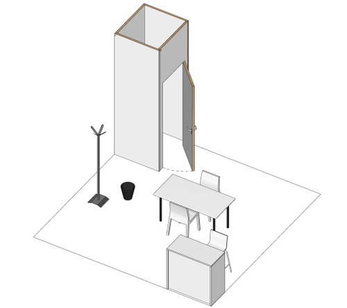 - nr.1 Ripostiglio 1x1 - nr. 1 Attaccapanni - nr. 1 Tavolo rettangolare bianco cm 140x80 - nr. 2 Sedie (bianca) - nr. 1 Reception desk - nr. 1 Sgabello - nr. 1 Cestino