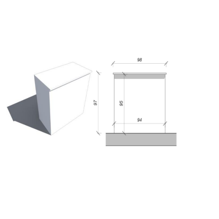 Banco reception con struttura in alluminio e legno tamburato.