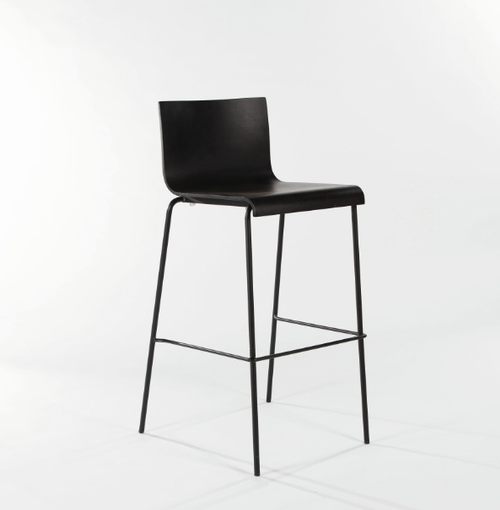 Sgabello nero, struttura in tubo d'acciaio verniciato e scocca in laminato