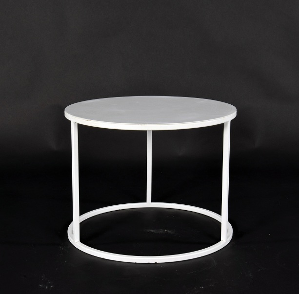 Tavolo tondo basso in ferro laccato bianco, design Csilla Gabor