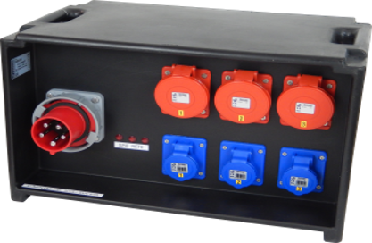 Noleggio in opera e funzionanti di quadri di distribuzione con interruttori modulari e prese tetrapolari fino a 32A (quadro Extra Large), così composto: n. 1 centralino bordo quadro n. 1 interruttore differenziale magnetotermico 4P 63A 30mA; n. 3 interruttore magnetotermico 3P+N 32A curva C 10 kA n. 3 interruttori magnetotermici 1P+N 16A curva C 6 kA n. 3 prese CEE 3P+N+T 32A n. 3 prese CEE 2P+T 16A n. 1 spina CEE 3P+N+T 63A Standard extra large distribution board (63A)